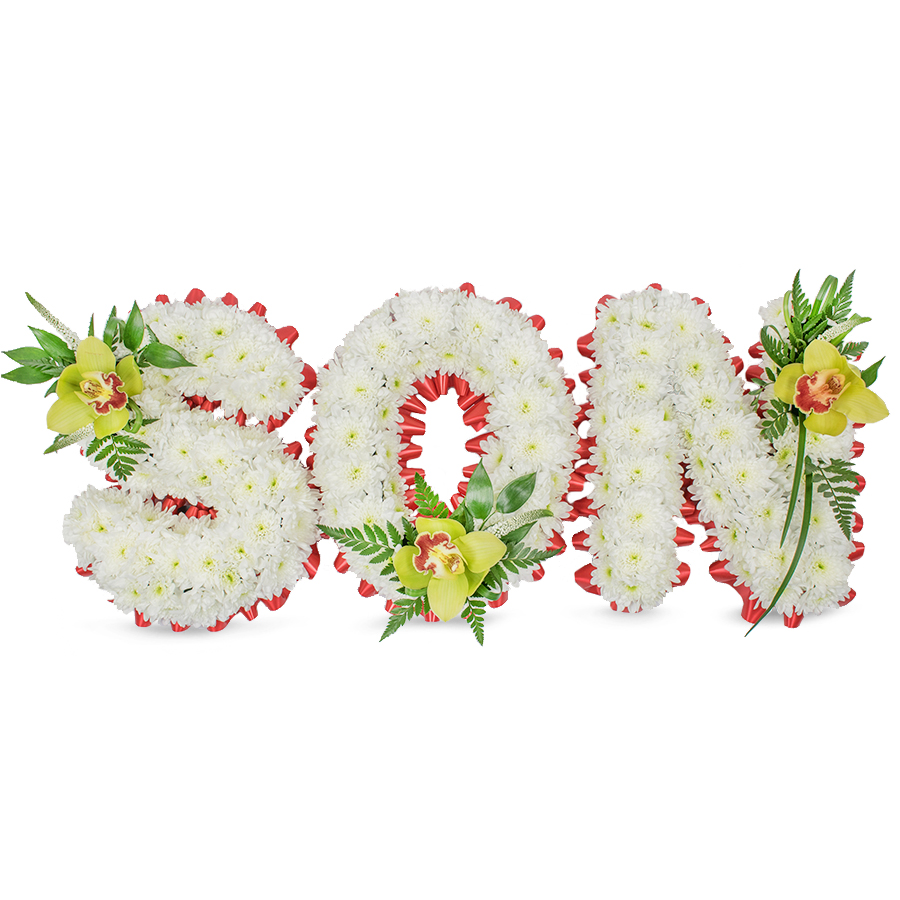 Expertly arranged to a length of approximately 90cm, this tribute is designed to sit perfectly by the coffin or display area, offering a peaceful focal point during the service. Each Heavenly Son Tribute is handcrafted by our skilled florists in Stroud Green, using only fresh, premium-quality blooms for lasting beauty.
